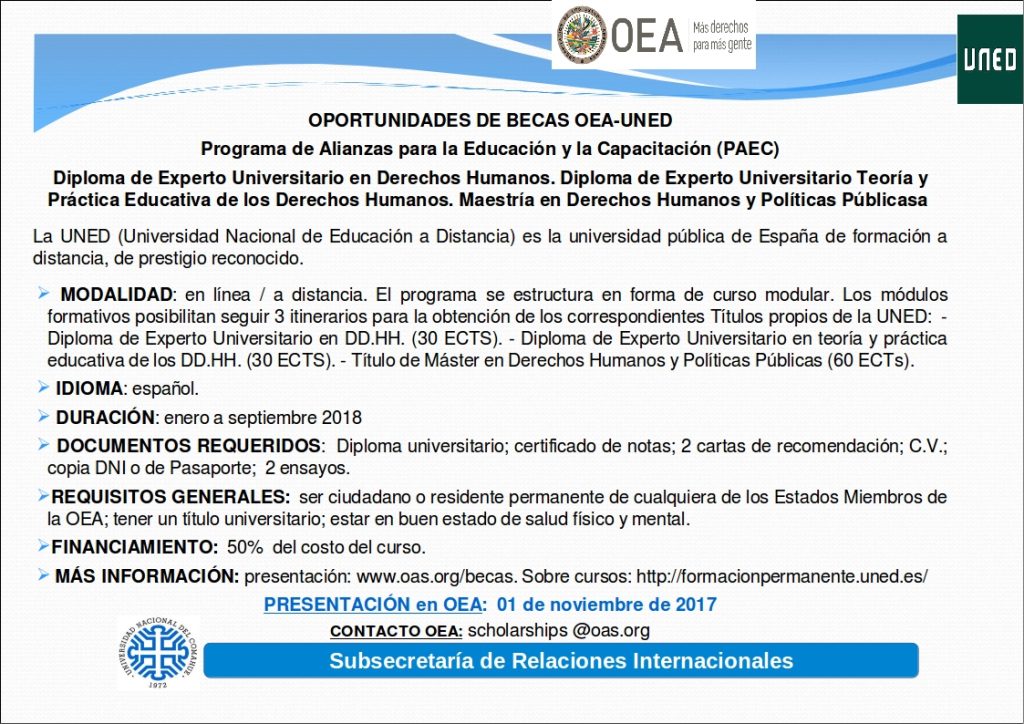- MÁS INFORMACIÓN: presentación: www.oas.org/becas. Sobre cursos: http://formacionpermanente.uned.es/