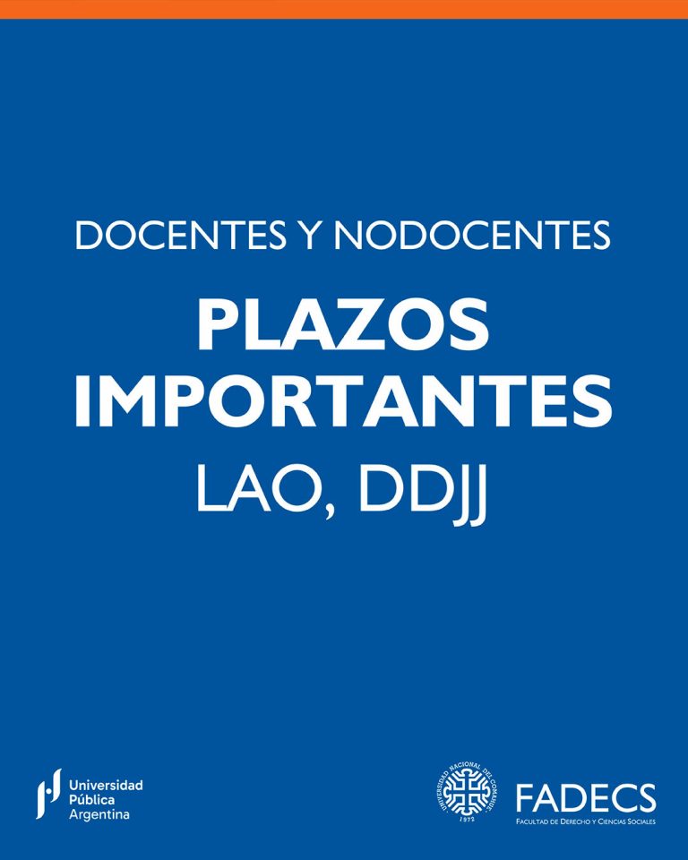 Ya están confirmadas las Jornadas para ingresantes a todas las carreras de la Facultad de Derecho y Ciencias Sociales (FADECS) para el ciclo 2026.