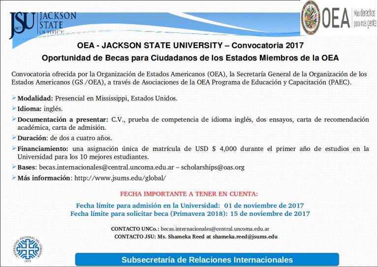 OEA – JACKSON STATE UNIVERSITY – Convocatoria 2017