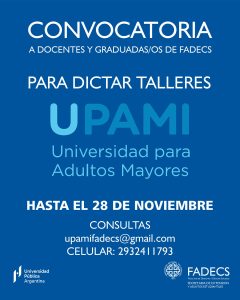 La Facultad de Derecho y Ciencias Sociales convoca a docentes y graduados/as a presentar propuestas de talleres destinados a personas mayores, para ser dictados en el marco del programa UPAMI